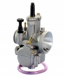 Die Wahl der Vergasergröße ist nicht immer einfach. Sie hängt von nur 2 Faktoren ab: Dem Hubraum und der Nenndrehzahl des Motors. Wird z.B. ein 125 ccm Motor, der seine maximale Leistung bei 6000 1/min abgibt mit einem 38 mm Vergaser ausgestattet so ist nachzuvollziehen, dass dieser Motor nicht so viel Luft ansaugt als ein 350 ccm Motor, der seine max. Leistung bei 10.000 1/min abgibt. Der Vergaser benötigt für das Funktionieren der Zerstäubung eine ausreichend große Gasgeschwindigkeit (Luftansauggeschwindigkeit).